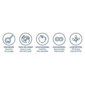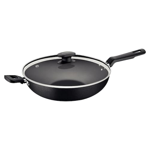 Preparar suas receitas favoritas ficou muito mais prático com a wok Tramontina Loreto em alumínio com revestimento interno antiaderente starflon max com tampa de vidro 28 cm de diâmetro 3,3 L Grafite. Produzida em alumínio com revestimento interno e externo de antiaderente Starflon Max, possui maior poder de antiaderência, maior resistência à abrasão e maior durabilidade. Possui cabo e alça em baquelite antitérmico e pegador em nylon, que proporcionam um manuseio confortável e seguro. A tampa é produzida em vidro temperado com saída de vapor e borda de aço inox. A Wok Tramontina garante rapidez no preparo graças ao seu formato e seu revestimento proporciona um cozimento muito mais saudável, pois exige baixa utilização de gordura, preservando ainda mais as propriedades nutritivas dos alimentos, ressaltando o sabor de seus pratos.