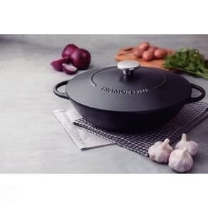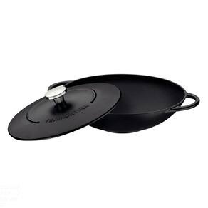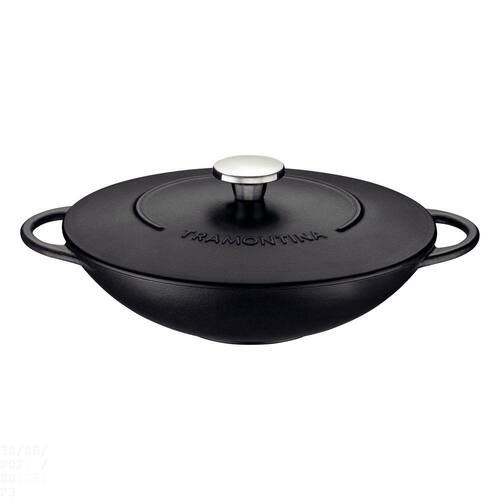 Preparar aquelas iscas de carne com sabor caseiro inesquecível fica muito mais fácil com a wok Tramontina Trento em ferro esmaltado com revestimento interno em antiaderente Starflon Excellent 32 centímetros 5 litros. Com ela, você cozinha os alimentos de maneira rápida e uniforme e ainda evita que eles grudem em sua superfície, pois é produzida em ferro fundido esmaltado com revestimento interno em antiaderente Starflon Excellent. É a clássica panela de ferro com a praticidade do antiaderente. Ela ainda é uma wok muito versátil, pois pode ir em diversos tipos de fogão e ir ao forno para gratinar suas receitas! Orientações Ferro fundido esmaltado com espessura de 3,2 mm que distribuir o calor de maneira rápida e uniforme. Revestimento interno de antiaderente Starflon Excellent que não gruda, é fácil de limpar, mais durável e não é prejudicial à saúde, pois é livre de PFOA. Pegador de aço inox.Pode ser levada ao forno, facilitando a finalização das receitas. Características Gerais EAN13 7891112297401 DUN14 17891112297408 NCM 7323.92.00 Peso Líquido 5,2600 kg. Peso Bruto 5,8200 kg. Metragem 0,014441 m³. Dimensões Embalagem (Compr. X Larg. X Alt.) 360x 355x 113 mm. Dimensões Produto (Compr. X Larg. X Alt.) 399x 331x 157 mm. Diâmetro 32,0 cm. Capacidade 5,00 l. Espessura 3,0 mm. Cor 1 000000 Hexa Observações A capacidade volumétrica máxima para cozimento é de 3/4 da capacidade total da peça. Posicione os cabos dos utensílios voltados ao centro do fogão. Em fogões com grade, centralize a peça e alinhe o cabo com a grade. Quando utilizar em fogões de base lisa, levante a peça para movimentá-la, evitando riscos em seu fogão. Utensílios quentes devem estar fora do alcance de crianças. Este produto não pode sofrer modificações. Antes do primeiro uso, lave manualmente com esponja macia, sabão ou detergente neutro. Seque com pano macio. Depois de secar, unte a área interna com óleo ou gordura e leve ao fogo por um ou dois minutos. Deixe esfriar e lave novamente. Seu utensílio está pronto para uso com ou sem gordura, sempre em fogo baixo ou médio (nunca superior a 260ºC). Seque totalmente as peças com pano macio e guarde-as sempre em locais secos e arejados, longe de vapor ou qualquer umidade. Para mexer os alimentos use somente utensílios de silicone, nylon ou madeira. O ferro esmaltado é extremamente resistente, mas pode ser danificado se cair ou bater contra uma superfície dura, portanto evite quedas e impactos, que podem provocar o desprendimento do esmalte. Se isto ocorrer, poderá haver a formação de ferrugem na área afetada, não alterando o desempenho do utensílio. Para proteger a área danificada, unte com óleo alimentício embebido em papel toalha. Limpeza: Evite choque térmico: não mergulhe o utensílio quente em água fria. Nunca utilize produtos abrasivos na lavagem. Se deixar queimar alimentos, umedeça a área com água e limpe com esponja e sabão neutro. Após a limpeza, aplique uma fina camada de óleo alimentício na borda da peça (corpo e tampa). Para descarte dos produtos e embalagens siga as orientações de reciclagem vigentes.