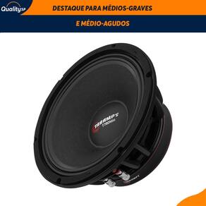 Especificações técnicas: • Potência RMS: 390W • Potência de Programa Musical: 780W • Impedância Nominal: 8 Ohms. • Sensibilidade(@ 1W, 1m)-Free-Air: 8 Ohms: 94,325dB • Material do fio da bobina: Alumínio • Material do ferrite: Bário Y25 • Massa diafragma (mmd): 8 Ohms: 37,975g • Diâmetro da bobina: 3 polegadas • Frequência de ressonância: 8 Ohms: 77Hz • Área efetiva do cone (sd): 0,034636 M² • Diâmetro nominal: 10 Polegadas • Peso: 5,9kg