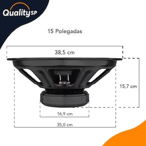 Especificações técnicas: • Potência RMS: 390W • Potência de Programa Musical: 780W • Impedância Nominal: 8 Ohms. • Sensibilidade(@ 1W, 1m)-Free-Air: 8 Ohms: 94,325dB • Material do fio da bobina: Alumínio • Material do ferrite: Bário Y25 • Massa diafragma (mmd): 8 Ohms: 37,975g • Diâmetro da bobina: 3 polegadas • Frequência de ressonância: 8 Ohms: 77Hz • Área efetiva do cone (sd): 0,034636 M² • Diâmetro nominal: 10 Polegadas • Peso: 5,9kg