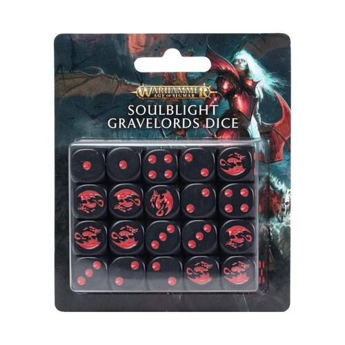Mantenha sua mesa assustadora! Embora os ossos já tenham sido s para fazer dados e possam parecer mais tematicamente apropriados, nós os faremos com que você tenha menos aparências estranhas. Este conjunto contém 20 dados de seis lados medindo 16 mm em cada borda, fundidos em preto com tinta vermelha e com o emblema do Soulblight Gravelords ocupando um lugar de destaque no 6.