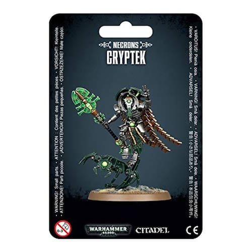 Este kit contém 18 componentes e uma base redonda de 50 mm, permitindo que você construa um Necron Cryptek armado com um bastão de luz e uma capa Canoptek.