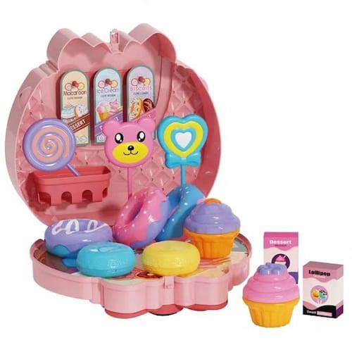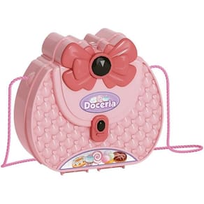 A Bolsa Fashion Workshop Jr é uma linda bolsa com alças acompanhada de diversos acessórios de docinhos para brincar de ter sua própria doceria e atender os clientes.