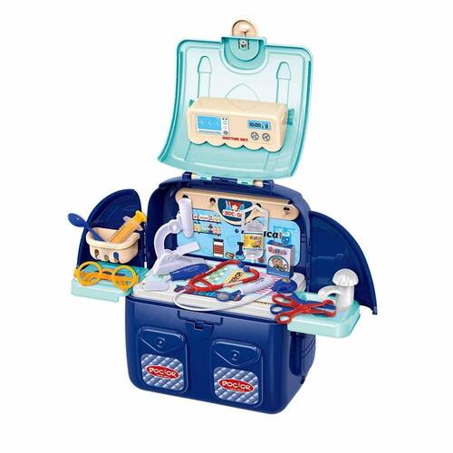 A Mochila Médico é super estilosa, completa e com função 2 em 1: mochila e estação de primeiros socorros. Acompanha mais de 25 acessórios temáticos para brincar de ser um-a- médico-a- de verdade: estetoscópio, seringa, tesouras, microscópio de brincadeirinha e muito mais!