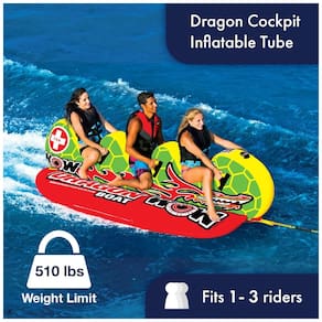 PASSEIO Posições de pilotagem do cockpit separadas para cada piloto com encosto alto e pontões extra largos para maior segurança e estabilidade. DRAGÃO INFLÁVEL Tubo rebocável para esportes aquáticos com capa de nylon Tuff Shell completa com zíper, bexiga de PVC resistente, 6 alças de espuma de tecido duplo com protetores de articulação. INFLAÇÃO E DEFLAÇÃO RÁPIDAS Válvula de velocidade para inflação e deflação rápidas, tampas de válvula com zíper. Tubo de banana rebocável projetado para 1 a 3 pilotos Marca: Não Informado