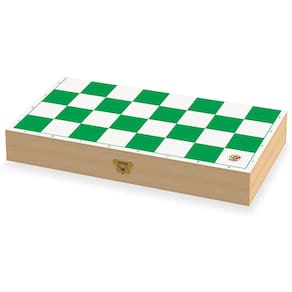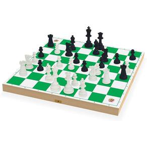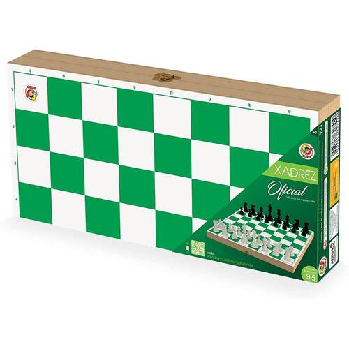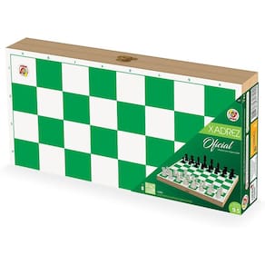 Jogo de xadrez oficial, com tabuleiro em madeira de MDF em formato de estojo dobrável. Tabuleiro aberto com 42x42 cm, fechado com 42x21 cm. Peças plásticas maciças para xadrez nas cores brancas e pretas -tamanho do rei 9, 5 cm -tamanho das casas do tabuleiro 5x5 cm. O jogo foi especialmente desenvolvido para os apaixonados por jogos de tabuleiro pois estimula o raciocínio lógico e técnicas de estratégia.