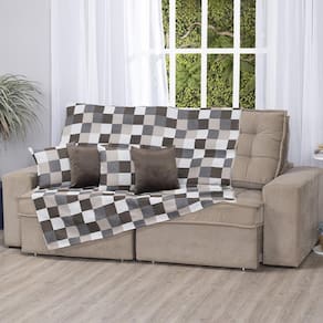 Xale de Jacquard Manta de Sofá Poltrona Cama 1,35m x 1,50m Cor: Tabuleiro avelã Os xales, ou mantas, são itens coringa na decoração. A grande variedade de cores, estampas e texturas te permite mudar a cara de qualquer ambiente de forma rápida e gastando pouco. Pode ser em sofás, poltronas, cadeiras, dentro de cestos ou até como peseira pra compor a roupa de cama. Contém na embalagem: 1 xale 1,35m comp. X 1,50m larg. Tecido e composição: Jacquard 59% algodão/41% poliéster - Acabamento em bainha no comprimento e desfiado na largura - Foto ilustrativa, tonalidade da cor pode variar um pouco no produto real Produtos fabricados em Ibitinga-SP, a Capital Nacional do Bordado e do Enxoval.