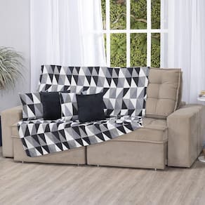 Xale de Jacquard Manta de Sofá Poltrona Cama 2,40m x 1,50m Cor: Losango preto Os xales, ou mantas, são itens coringa na decoração. A grande variedade de cores, estampas e texturas te permite mudar a cara de qualquer ambiente de forma rápida e gastando pouco. Pode ser em sofás, poltronas, cadeiras, dentro de cestos ou até como peseira pra compor a roupa de cama. Contém na embalagem: 1 xale 2,40m comp. X 1,50m larg. Tecido e composição: Jacquard 59% algodão/41% poliéster - Acabamento em bainha no comprimento e desfiado na largura - Foto ilustrativa, tonalidade da cor pode variar um pouco no produto real Produtos fabricados em Ibitinga-SP, a Capital Nacional do Bordado e do Enxoval. Marca: Não Informado