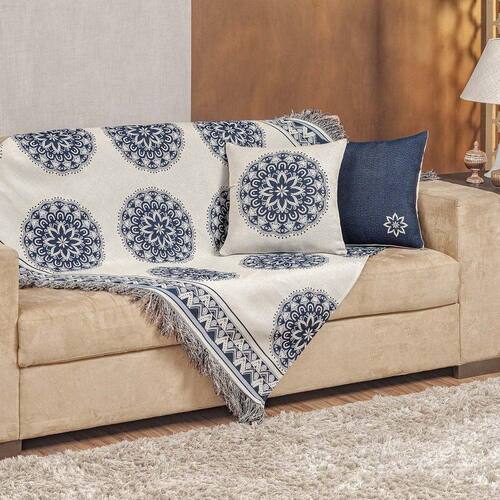 Xale Decorativo Turin Com Franja 1,60m X 1,40m Jacquard 1 Peça 58% Algodão 42% Poliéster - Mandala Marinho Compose O Xale Decorativo Turin com Franja é o acessório perfeito para transformar o visual do seu sofá com elegância e sofisticação. Confeccionado em tecido Jacquard, ele une a durabilidade do poliéster com o toque natural do algodão, proporcionando um caimento impecável. Por que escolher este produto? - Design Sofisticado: Tecido Jacquard com padronagem Mandala Marinho Compose que agrega valor à decoração. - Acabamento com Franja: Detalhe clássico que confere charme e movimento à peça. - Versatilidade: Protege o estofado enquanto renova o ambiente com estilo.