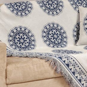 Xale Decorativo Turin Com Franja 1,60m X 1,40m Jacquard 1 Peça 58% Algodão 42% Poliéster - Mandala Marinho Compose O Xale Decorativo Turin com Franja é o acessório perfeito para transformar o visual do seu sofá com elegância e sofisticação. Confeccionado em tecido Jacquard, ele une a durabilidade do poliéster com o toque natural do algodão, proporcionando um caimento impecável. Por que escolher este produto? - Design Sofisticado: Tecido Jacquard com padronagem Mandala Marinho Compose que agrega valor à decoração. - Acabamento com Franja: Detalhe clássico que confere charme e movimento à peça. - Versatilidade: Protege o estofado enquanto renova o ambiente com estilo.