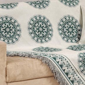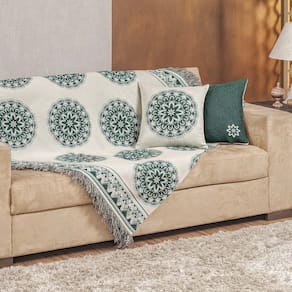 Xale Decorativo Turin Com Franja 1,60m X 1,40m Jacquard 1 Peça 58% Algodão 42% Poliéster - Mandala Verde Compose