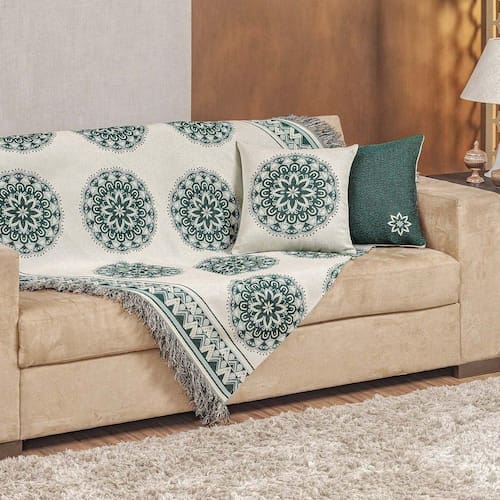 - Design Sofisticado: Tecido Jacquard com padronagem Mandala Verde Compose que agrega valor à decoração.