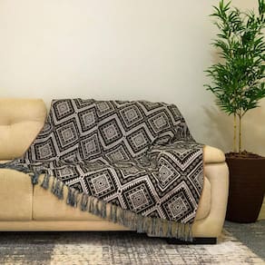 Conhecido como xale ou manta para sofá, elas são responsáveis por trazer acolhimento e aconchego ao ambiente sem renunciar à elegância e proteção. O xale para sofá é dupla face, o que o torna muito versátil, sendo capaz de renovar o ambiente com facilidade. Pode ser usado em sofás, poltronas ou cadeiras estofadas. Seu tecido em jacquard o torna resistente e ao mesmo tempo proporciona elegância e conforto. Protegendo os estofados das avarias causadas pelo dia a dia, são fáceis de lavar e práticas para trocar.