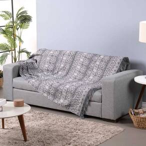 Xale Para Sofá Com Franja Luxor 1 Peça 2,10m X 1,35m 60% Algodão / 40% Poliéster Tecido Jacquard - Cinza Geométrico