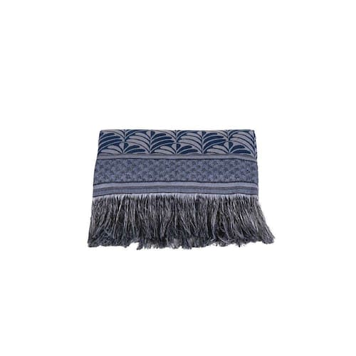 Xale Para Sofá Com Franja Luxor 1 Peça 2,10m X 1,35m 60% Algodão - 40% Poliéster Tecido Jacquard Cor:azul Palmeira