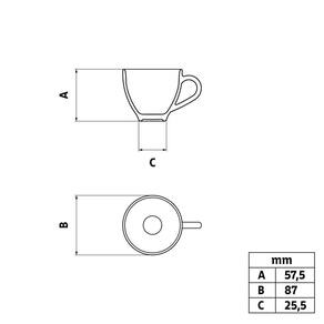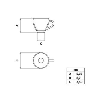 Fabricado em PorcelanaUso: Impróprio para micro-ondas e lava-louçasColeção: AnnaPorosidade próxima de zero, evitando a proliferação de fungos e bactériasVolume da xícara: 100ml
