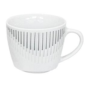 É produzido em porcelana de altíssima qualidade na cor branco com detalhes cinza e preto que traz uma sensação de leveza a sua mesa. A Caneca possui 200ml, é perfeita para a decoração de sua mesa posta para suas reuniões, comemorações, cerimônias ou qualquer que seja o evento.