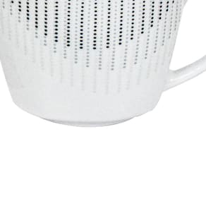 É produzido em porcelana de altíssima qualidade na cor branco com detalhes cinza e preto que traz uma sensação de leveza a sua mesa. A Caneca possui 200ml, é perfeita para a decoração de sua mesa posta para suas reuniões, comemorações, cerimônias ou qualquer que seja o evento.