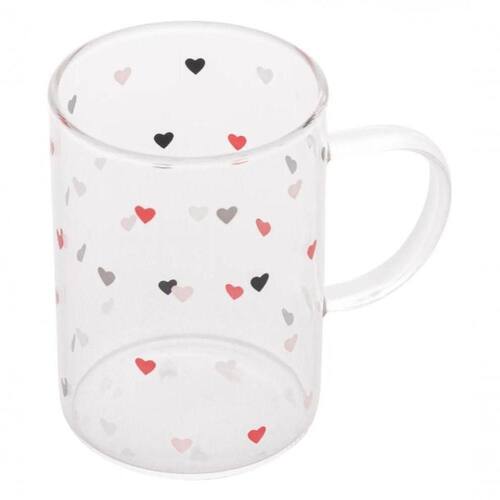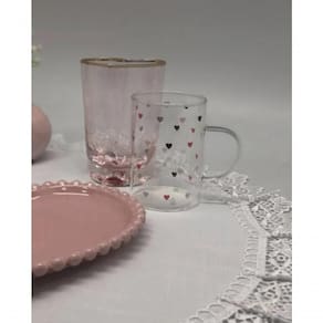 Xícara Caneca De Vidro Corações Love 200 Ml - Lyor