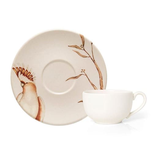 Xícara Com Pires Copa E Cia Aquarelle Em Cerâmica Cacatua Xícara com Pires Copa e Cia Aquarelle em Cerâmica Cacatua - Características Gerais do Produto: - Composição: 100% Cerâmica. - Detalhes: Produto produzido no Brasil.; Produzido no Brasil.; Peça Vendida de Forma Individual.; Processo de Estampa Digital (Maior Resolução e Detalhes).; Design Exclusivo Copa&Cia.; Peça Vendida de Forma Avulsa (Individual).; Processo de Decoração Digital.; Peça Vendida Avulsa (Individual). - Cuidados: Não Utilizar Solventes ou Abrasivos.; Lavar com Detergente Neutro e Esponja Macia.; Não Deixar de Molho.; Podem ser Colocados em Lava-Louças e Micro-Ondas. - Dimensões (cm): Xícara de Chá: 9,3 cm (200ml); Pires: 15,5 cm ; Pires: 15,5 cm Acompanha o produto: - 1 Peça de Xícara com Pires Garantia: - 7 dias/30 dias contra defeito de fabricação