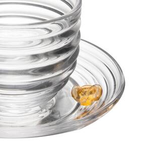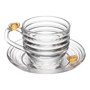 Xícara com pires little bee 200ml cristal grosso abelha chá A xícara bee abelha com pires é feita de cristal grosso, ondulada conforme uma colmeia, combinada com uma abelha âmbar na alça da xícara, e também no pires. Com capacidade de 200ml, cada xícara é ideal para servir suas bebidas favoritas com elegância. O pires complementa o conjunto, proporcionando um suporte prático e estiloso para as xícaras, enquanto o design little bee adiciona um charme especial.