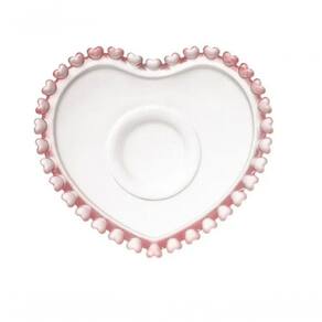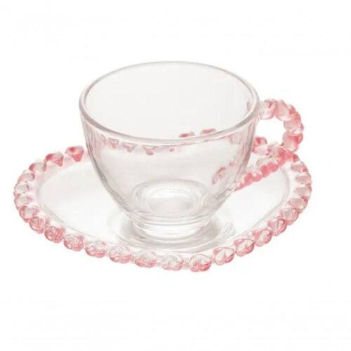 Xícara de Café Cristal Coração Borda Rosa 80ml e Pires Lyor
