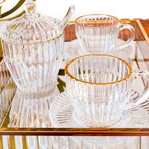 Xícara de Chá de Cristal com Fio de Ouro Império 220ml Wolff