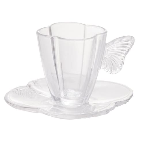 Xícara de Chá de Vidro com Pires Butterfly 180ml Wolff