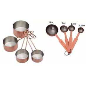 Xicara e colher medidor 08 tamanho inox bronze rose mimo Especificações: - contém 4 xícaras de medição: 250 ml xícara , 125 ml 1/2 xícara , 80 ml 1/3 xícara , 60 ml 1/4 xícara . - fabricadas em aço inox - recomendado para a medição de ingredientes durante a preparação de receitas - ou doméstico - marca: mimo style Especificações: Dimensões cxaxl : 13,1 x 4 x 1,8 cm Peso: 58 g Capacidade: 15 ml / 5 ml /2,5 ml / 1,25 ml Material: inox Conteúdo da embalagem: Colheres medidoras 4 peças inox bronze