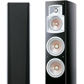 Sistema de alto-falantes Bass Reflex de 3 vias em torre. A série EF (Elliptical Form) tem cornetas Waveguides, woofers PMD (Polymer-injected Mica Diaphragm) e cabeamento interno da mais alta qualidade Monster Cable, para total aproveitamento do som em músicas e filmes digitais, mais gabinetes com o acabamento elegante dos pianos tradicionais Yamaha.