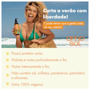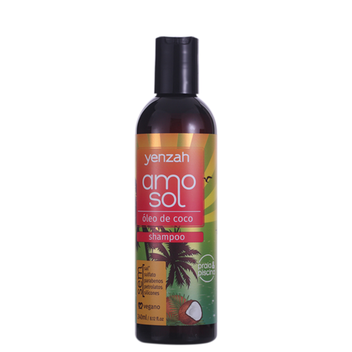 Shampoo para cabelos expostos ao sol, praia e piscina. Yenzah Amo Sol Shampoo garante reparação e proteção contra danos solares.