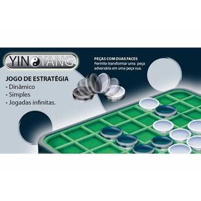 Conteúdo da embalagem: 1 tabuleiro de plástico em relevo flocado verde com encaixes para as peças; Conjunto de 64 peças de resina 2 cores; 1 manual de regras. Jogo de estratégia que estimula concentração, raciocínio. Medidas do tabuleiro ying yang (L x A): 54 x 42 cm Medidas da embalagem (C x A x L): 37 x 26 x 4 cm Embalagem: caixa de papelão. Idade: a partir de 7 anos. Prazo de garantia: 03 meses de garantia legal.