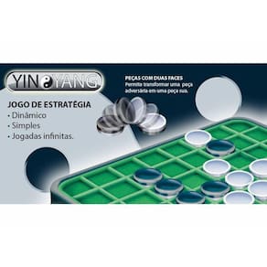 Yin Yang - Ludens Spirit Número de participantes: 2 jogadores.Tempo médio de partida: 25 min.O ying yang é uma versão moderna para este clássico dos jogos de confronto estratégicos. O objetivo é conquistar o maior território com as peças que possuem duas cores, Na hora do domínio vire as peças do adversário na sua cor. Aprenda jogar em 1 minuto e não pare mais até se tornar um campeão Objetivo do jogo é virar a maior quantidade de peças para a cor de um dos jogadores.Ref.: JLS-006.Conteúdo da embalagem: 1 tabuleiro de plástico em relevo flocado verde com encaixes para as peças;Conjunto de 64 peças de resina 2 cores;1 manual de regras.Jogo de estratégia que estimula concentração, raciocínio.Medidas do tabuleiro ying yang (L x A): 54 x 42 cmMedidas da embalagem (C x A x L): 37 x 26 x 4 cmEmbalagem: caixa de papelão.Idade: a partir de 7 anos.Prazo de garantia: 03 meses de garantia legal.INMETRO CE-BRI/INNAC - 00475-001 NM 300/2002