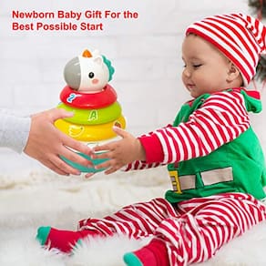 Yiosion Empilhamento Anéis Bebê Brinquedo com Unicórnio Topper, Weeble Wobble Empilhamento Brinquedos para 3,6,9,12 Meses Menino Menina Presentes, Bebê Montessori Brinquedos Sensoriais 6 Para 12 Meses Desenvolvimento