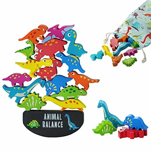 Dinossauro Empilhamento Brinquedo - Montessori Brinquedos para 3+ Anos de idade, [15 Peças] Toddler Dinossauro Toy para Aprender & Treinamento de equilíbrio, Jogo de madeira como Natal & Presentes de aniversário [Resistente & Impermeável]