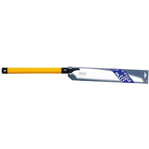 Serrote Super H-333 é o serrote para serviços pesados, cortar vigas é com ele mesmo, tem superfície reta, lâmina muito resistente e dentes durissimos, ideal para uso em marcenaria ou carpintaria, versátil e robusto, com ampla utilidade. Dentes universais, para corte Rip, Cross e Slant inclinado . Ideal para trabalho pesado e cortar, vigas, madeira compensada, madeira laminada, madeira maciça, etc. Corte excepcionalmente limpo. Todos os dentes da linha Z-Saw são endurecidos através do Hard Impulse, tratamento que eleva o grau de dureza do aço ao nível HV800-950 64.0 - 68.2 HRC , que é a dureza máxima que o aço pode alcançar. O Cabo longo de aluminio revestido com borracha. Especificações: Comprimento do cabo: 330mm Comprimento da lâmina: 333 mmPitch entre dentes : 2,8 mm Espessura: 0,9 mm Corte Kerf ; 1,30 mm Tratamento de superfície: Cobertura de óleo Origem: Japão Marca: Zet Saw Lamina de : Sim Atenção : Lâmina muito afiada, use luva ou papelão para trocar a lâmina, evite acidentes. Para prolongar a vida útil de seu serrote, faça a hidratação da lâmina após o uso com óleo tipo WD. Ean: 4963041150140