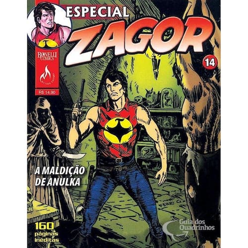 Zagor Especial 14 - A maldição de Anulka A história combina elementos de aventura e terror, característicos das narrativas de Zagor. Nessa trama, Zagor enfrenta uma maldição ancestral ligada à personagem Anulka, envolvendo eventos sobrenaturais e desafios que testam sua coragem e habilidades. Marca: Não Informado Ean: 7897662352904