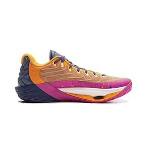 Los zapatos profesionales de baloncesto para hombre LI-NING Power ? combinan tecnología avanzada LIGHT FOAM ULTRA y LI-NING JIANG para ofrecer una amortiguación superior y retorno de energía mejorado. Con una suela de goma multi-patrón que brinda tracción excepcional y una parte superior de TPU y textil que garantiza un ajuste cómodo y ceñido, estas zapatillas son ideales para jugadores que buscan rendimiento, ligereza y protección contra lesiones en rodillas y tobillos. Su diseño vibrante en tonos púrpura, naranja y rosa atrae a un público joven y orientado al rendimiento.