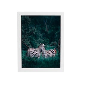 Zebras Floresta Natureza Foto Quadro Moldura Branca 60X40Cm