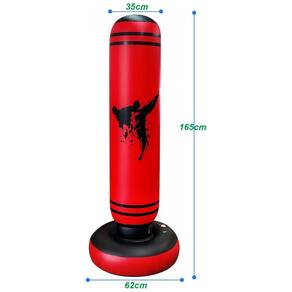 Marca: ZHUYNXIR? Fabricante: ZHUYNXIR? Modelo: Punch bag (SX003-23)? Tipo de produto: Saco de pancadas inflável infantil em pé? Tamanho nominal: 12x63 IN (coluna de aproximadamente 30 cm x 160 cm)? Esporte indicado: Boxe recreativo? Cor: Vermelho e preto? Faixa etária recomendada: Juvenil (youth, unissex teen)? Material predominante: PVC plástico espesso? Altura aproximada do produto: 160 cm? Diâmetro da coluna: 30 cm? Diâmetro da base: 56 cm? Dimensões do produto (diâmetro x altura): 30 cm x 160 cm? Dimensões do item (comprimento x largura x altura): 30 cm x 30 cm x 160 cm? Dimensões da embalagem (comprimento x largura x altura): 22,8 cm x 19,9 cm x 7,6 cm? Peso do produto: 0,86 kg Peso do pacote (produto + embalagem): 0,93 kg? Base: Compartimento inferior para preenchimento com água ou areia? Número de itens: 1 unidade? Sugestão de usuários: Unissex juvenil? Conteúdo da embalagem: 1 saco de pancadas inflável, remendo de reparo? Manual do usuário: Manual em inglês? Marca: Não Informado