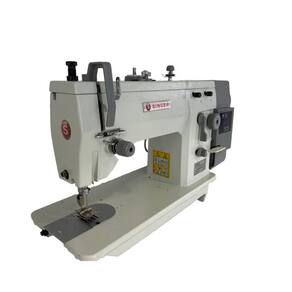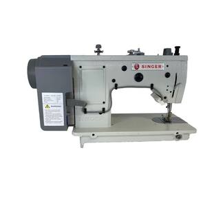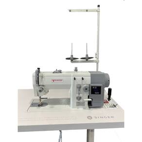 Máquina de costura profissional Singer Direc Drive com motor de acionamento direto e economia de energia. Possui mesa ajustável, suporte de linha e elevação de joelho. Conversível entre costura reta, zigue-zague ou cetim. Dispositivo de controle de posição da agulha para caseado. Enrolador de bobina embutido. Lubrificação automática.Alça retrátil