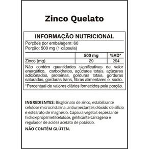 O zinco é um mineral que exerce uma função importante em vários mecanismos naturais. Ele ajuda a manter o equilíbrio físico e proporcionar qualidade de vida. Além disso, o zinco auxilia na manutenção da pele e cabelos e na percepção de sabores e aromas. Embora o zinco esteja presente em alimentos como carnes, grãos integrais e leguminosas, muitas pessoas não conseguem ingerir a quantidade necessária apenas pela dieta, especialmente devido à baixa biodisponibilidade em certos alimentos vegetais. O zinco na forma quelada está ligado a agentes quelantes, que podem ser aminoácidos, por exemplo, oferecendo um melhor aproveitamento. Isso se dá devido ao aumento na disponibilidade biológica, solubilidade e estabilidade do mineral. Benefícios: Grandes Benefícios a estrutura de suporte do corpo: Para homens e mulheres que buscam qualidade de vida e desempenho; Benefícios a qualidade da pele; Grande sintetizante de vitamina A; Atua ao bem-estar de unhas e cabelos; Rico em carboidratos; Atua na síntese de proteína; Na falta de uma alimentação adequada de alimentos fontes de zinco como, carnes, mariscos, nozes, sementes, leguminosas, grãos e alimentos fortificados com zinco, é importante a suplementação de Zinco para uma boa qualidade de vida. Sugestão de Uso: 1 cápsula ao dia, ou conforme recomendação profissional. Marca: Não Informado Ean: 7898972147587