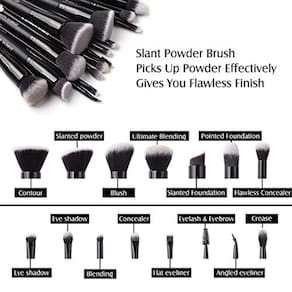 Cor: BlackGood notícias para profissionais de maquiagem e iniciantes! Zoreya 15 peças conjunto de escovas de maquiagem contém 5 escovas básicas, maiores de maquiagem e 10 pincéis relativamente menores. Este conjunto atende quase todas as suas exigências para seus olhares de fantasia. Com alto custo de desempenho e alta qualidade. Este conjunto faz dele um bônus para todos os entusiastas da maquiagem. Cobre todas as áreas do seu Face.It funciona bem para olhos, nariz, lábios, bochechas, testa e até mesmo áreas de difícil acesso em seu rosto. É útil para aplicações versáteis como Ventilador, Pó, Blush, Contorno, Sombra dos Olhos, Ocultação, Mistura, Sombreamento do Nariz, Delineador Labial, Sobrancelha, Delineador, Chicote e muito mais. Possui fibras sintéticas macias e alças duráveis. As fibras sintéticas macias não absorvem líquidos e cremes, mas espalham-na uniformemente no rosto para um visual perfeitamente misturado. A alça de madeira é firme e fácil de segurar. NOTA: O novo produto vai ter algum cheiro, por favor, não se preocupe, não é das cerdas, mas da cola na conexão da haste da escova. Por favor, tire os pincéis e coloque-os no ar, o cheiro desaparecerá em breve. Obrigado pelo apoio.